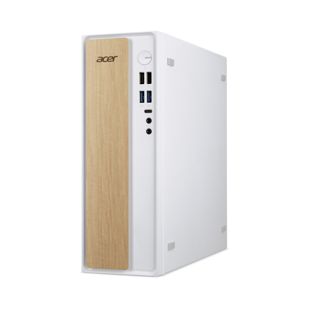 Stilvolle FunktionalitätDer Acer Aspire XC AI vereint moderne Eleganz mit kompakten Abmessungen und ist in einem schlanken weißen Gehäuse mit markanter Vorderseite in Holzoptik oder ganz klassisch komplett in Schwarz erhältlich. Ein integrierter Fingerabdruck-Scanner sorgt für zusätzliche Sicherheit, und das außergewöhnliche Design minimiert Ablenkungen und maximiert die Konzentration.