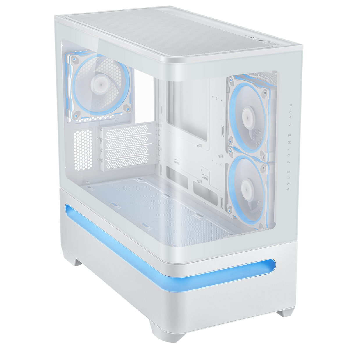 Das ASUS Prime AP202 ARGB ist ein vielseitiges Panorama-MATX-Gehäuse, das entwickelt wurde, um Systemkomponenten mit Stil zu präsentieren. Eine gebogene Scheibe aus gehärtetem Glas erstreckt sich nahtlos von der Vorderseite bis zur Seite und bietet einen spektakulären Blick auf die Komponenten aus fast jedem Winkel. Ein patentierter Lüftungsschlitz sorgt für optimale Kühlung der Grafikkarte und ein integriertes ARGB-Lichtband arbeitet nahtlos mit Aura Sync zusammen.