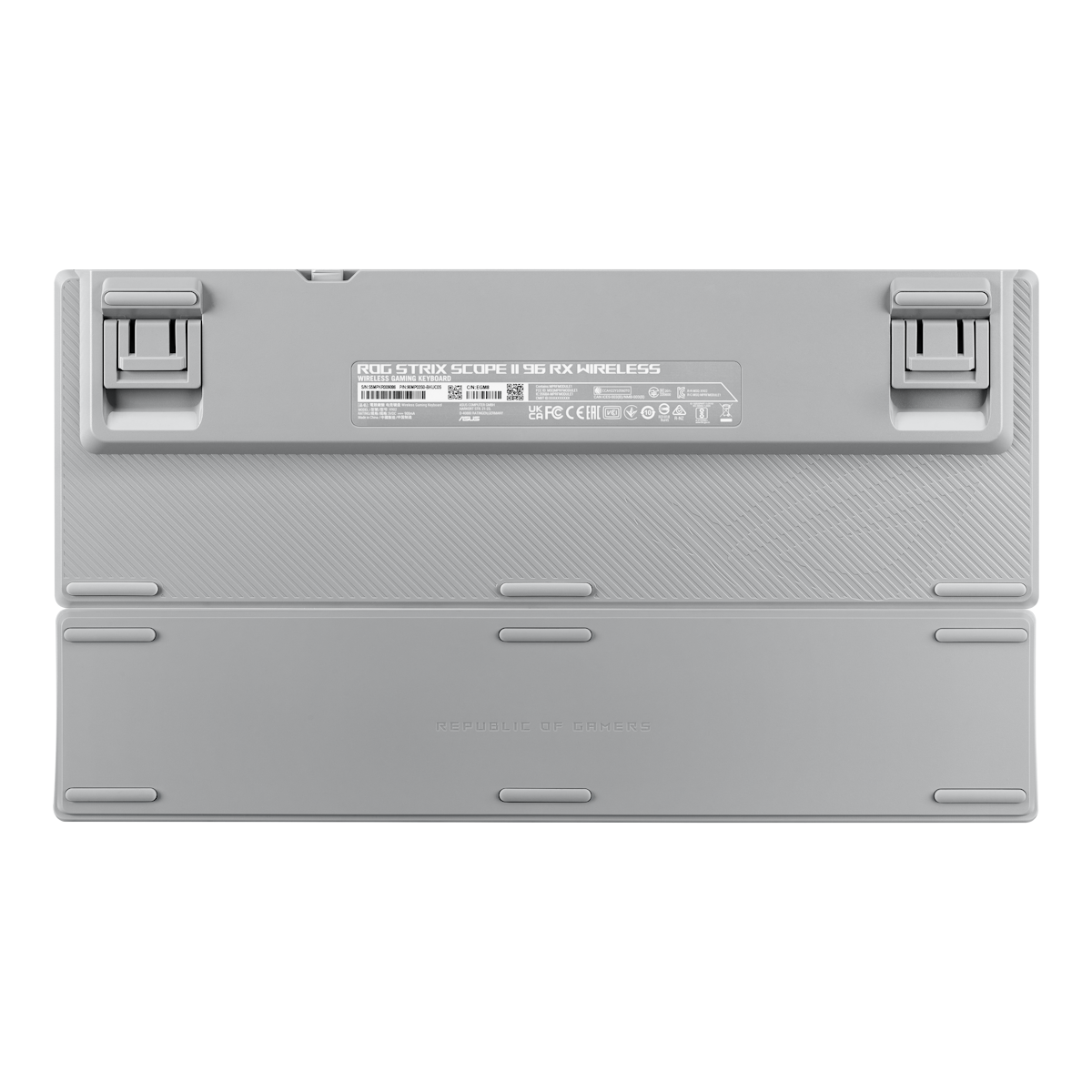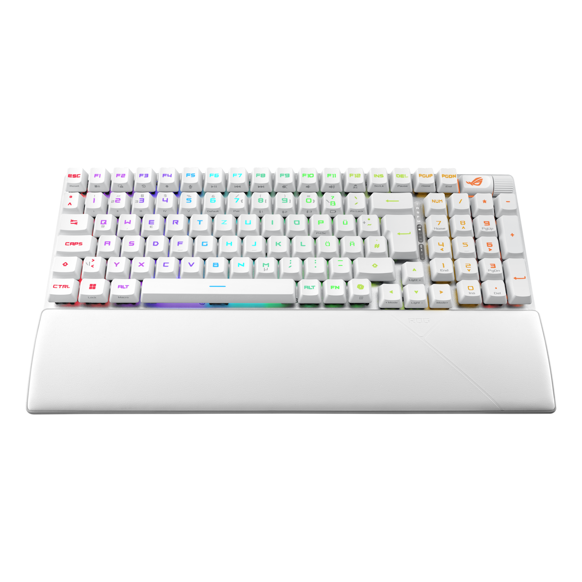 Die ROG Strix Scope II 96 RX Wireless kommt mit zusätzlichen UV-beschichteten Tastenkappen mit speziellen ROG-Elementen für einen einzigartigen Look. Zusätzlich sorgen fünf RGB-LEDs unter der Leertaste für noch beeindruckendere Lichteffekte.