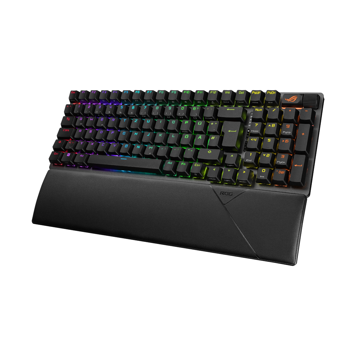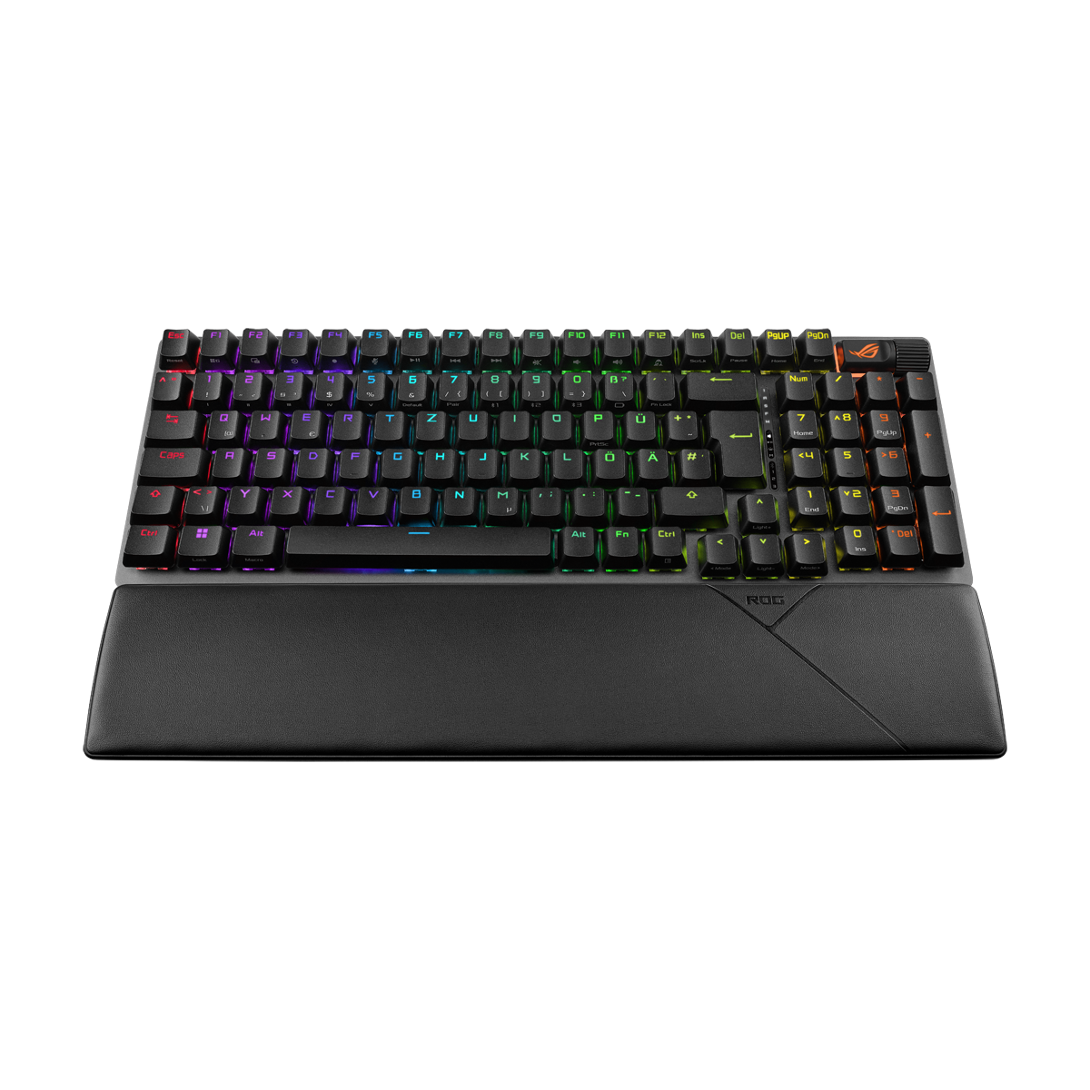 Die ROG Strix Scope II 96 Wireless ist eine voll funktionsfähige Gaming-Tastatur, die in einem 96% effizienten Layout verpackt ist, um Platz auf deinem Schreibtisch zu schaffen. Mach dich bereit für ein Premium-Erlebnis mit maximaler Vielseitigkeit und unbegrenzten Möglichkeiten zur individuellen Gestaltung. Sie verfügt über eine Tri-Mode-Verbindung mit ROG SpeedNova Wireless-Technologie und ROG Omni Receiver. Sie verfügt über hot-swap-fähige, vorgeschmierte mechanische ROG NX Snow-Switches und ein einzigartiges Design aus dämpfendem Silikonschaumstoff mit integrierten Schalterdämpfungspads für ein großartiges Tipperlebnis. Außerdem verfügt sie über Hotkeys für die Xbox Game Bar und Aufnahmefunktionen sowie eine intuitive Multifunktionstaste mit Multirad. Zusätzlich kann der Neigungswinkel dreifach verstellt werden und es gibt eine abnehmbare Handgelenkstütze.