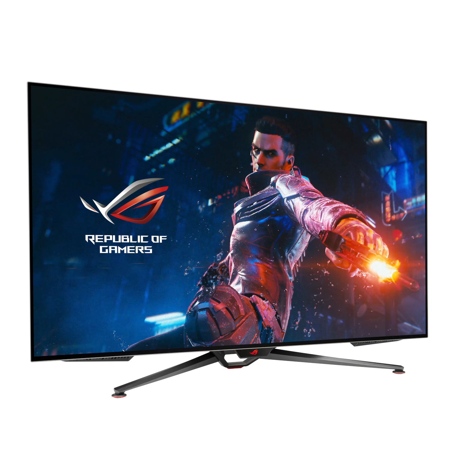 Der ROG Swift OLED PG48UQ ist ein 47,5-Zoll-4K-OLED-Gaming-Monitor, der mit einer entspiegelten Micro-Textur-Beschichtung ausgestattet ist, die Reflexionen reduziert und dafür sorgt, dass du die Farben auf dem Bildschirm genauer siehst. Die superschnelle Bildwiederholrate von 138 Hz (übertaktet) und die blitzschnelle Reaktionszeit von 0,1 ms sorgen für ein unglaublich intensives Spielerlebnis. Außerdem sorgen 98 % DCI-P3-Farbraum, echte 10-Bit-Farben und Delta E < 2 für naturgetreue Farben und möglichst dunkle Schwarztöne.