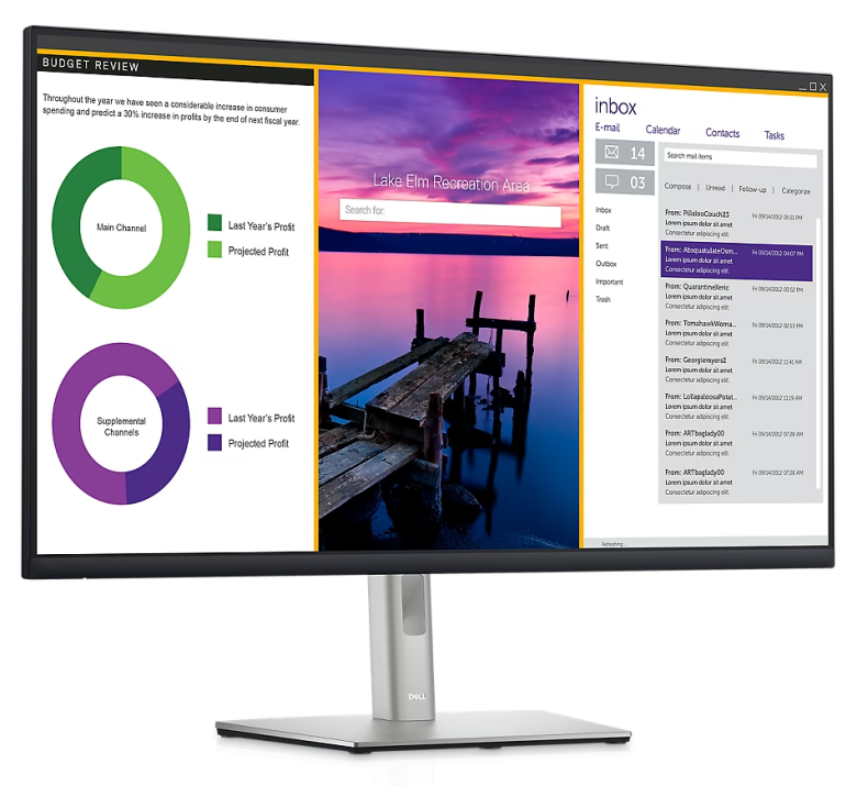 Schnelle Produktivität: Drücken Sie einfach auf den Betriebsschalter des Monitors. Die Power-Sync-Funktion startet den Monitor und den angeschlossenen Dell PC, selbst wenn die Laptop-Abdeckung geschlossen ist. Mit ausgewählten Dell PCs kompatibel. Übersichtliches Setup: Verwandeln Sie Ihren Monitor in einen Produktivitätshub mit RJ45 für kabelgebundene Ethernetkonnektivität und USB-C mit bis zu 90 W Power Delivery – alles in einem übersichtlichen Setup. |