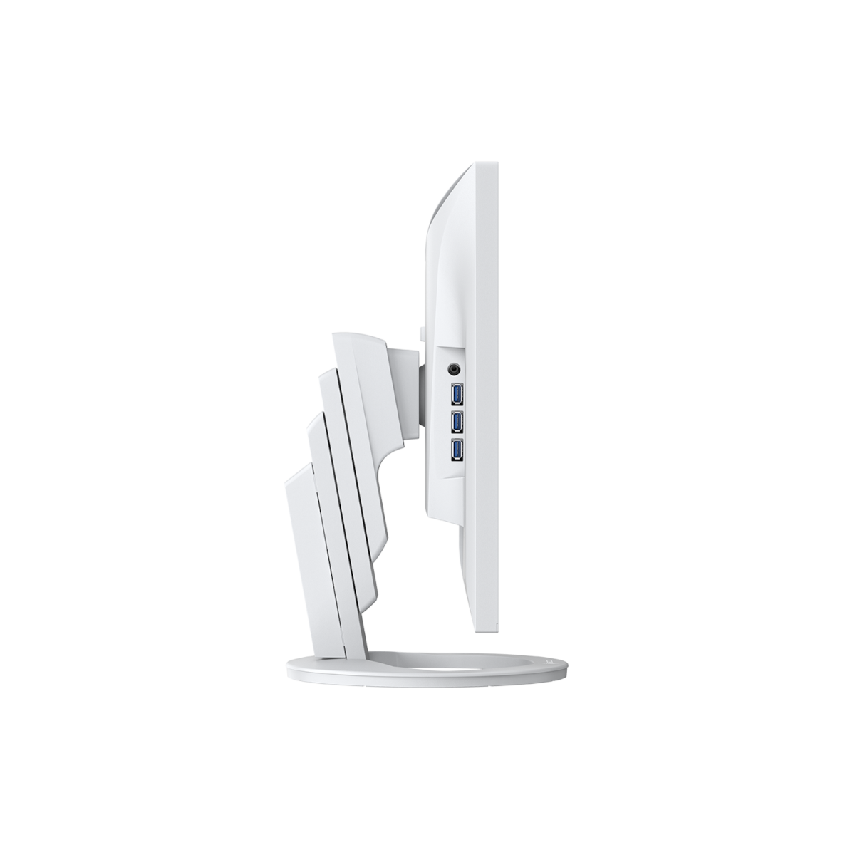 | Elegantes DesignDas Aussehen eines Monitors trägt wesentlich dazu bei, eine angenehme Arbeitsatmosphäre zu schaffen. Durch sein feines, praktisch rahmenloses Design und seine ergonomischen Funktionen fügt sich der Monitor ganz natürlich in Ihre Arbeitsumgebung ein, egal ob Sie zu Hause oder im Büro sind. Neben elegantem Schwarz ist das Gehäuse auch in Weiß, mit farblich genau passenden weißen Kabeln, erhältlich. Der EV2485 passt übrigens ideal zu Daisy-Chain-Mehrschirmsystemen mit dem Schwestermodell EV2495. Gehäusedesign und Standfuß sind identisch. |