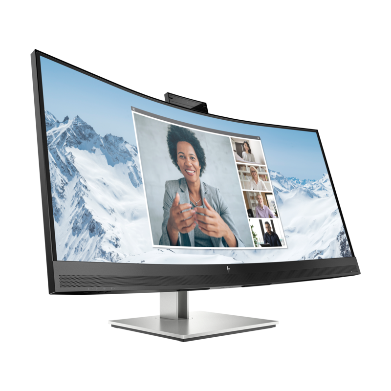 HP E34m G4 WQHD USB-C Curved-KonferenzmonitorBleiben Sie ganz einfach mit Ihren Kollegen in Kontakt – dank eines Monitors mit integrierter 5-MP-Webcam mit einstellbarer Neigung, nach vorn gerichteten Lautsprechern, zwei Mikrofonen und simpler Verbindung über nur ein USB-C-Kabel. |