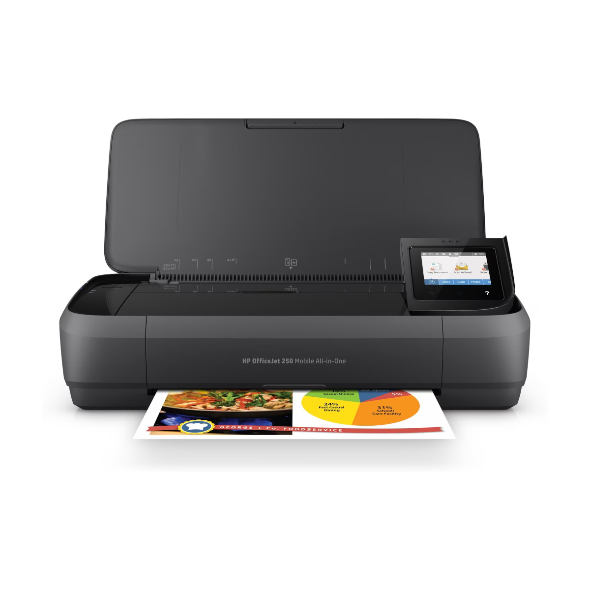 Klein, leicht und kompakt – der Multifunktionsdrucker HP OfficeJet 250 begleitet dich zu jedem Termin und steht dir flexibel mit Marketingmaterialien und Präsentationen zur Seite, ebenso als Scanner und Kopierer. Verlässlich dank Profi-Druckqualität und einem leistungsfähigen Akku, falls vor Ort keine Steckdose zur Verfügung steht.