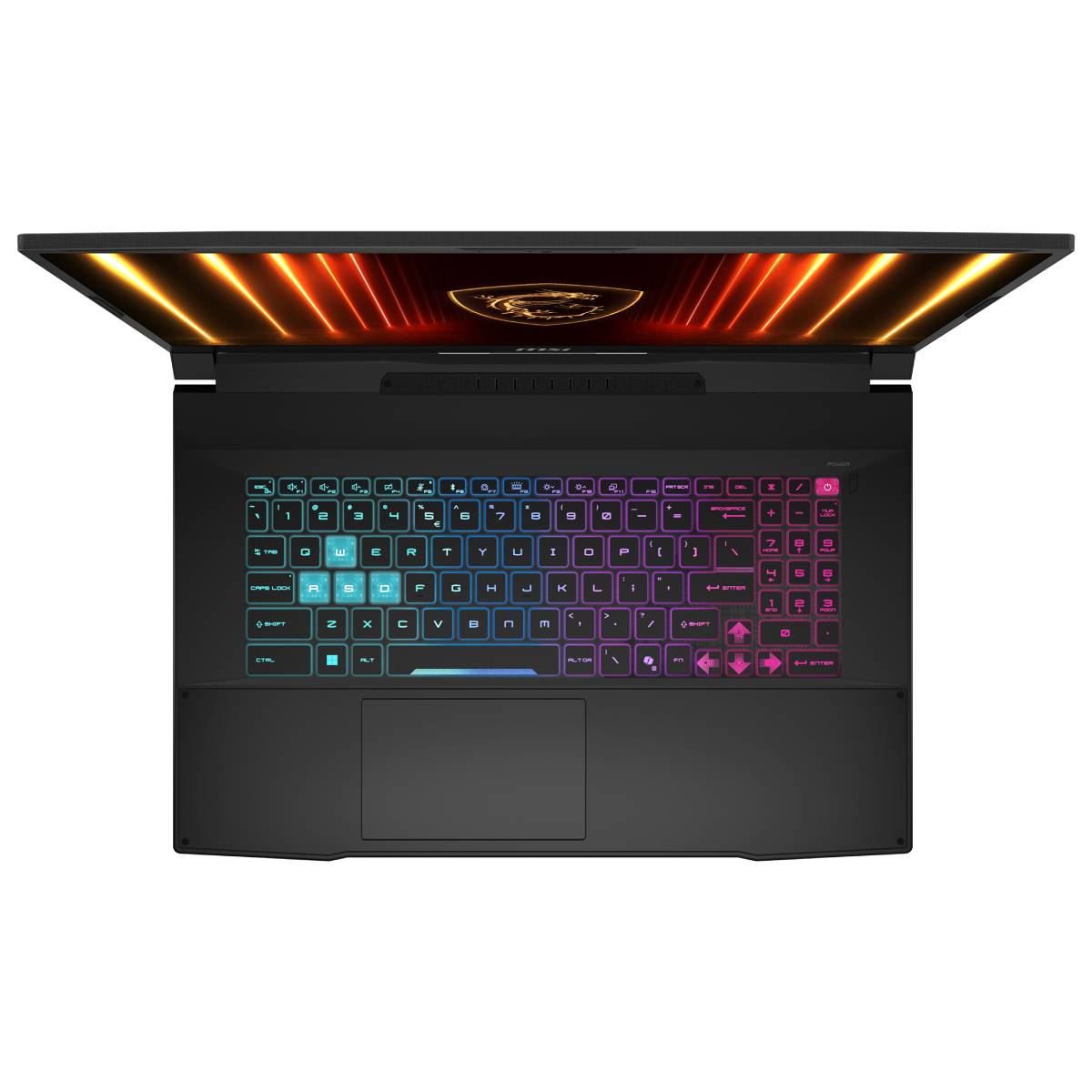 Die Tastatur mit 4-Zonen-RGB-Beleuchtung setzt den Laptop extra in Szene und sorgt für Komfort in dunkler Umgebung. Je Zone kann die Tastatur per Mystic Light frei mit einer RGB-Farbe nach Wahl individualisiert und mit Effekten versehen werden.