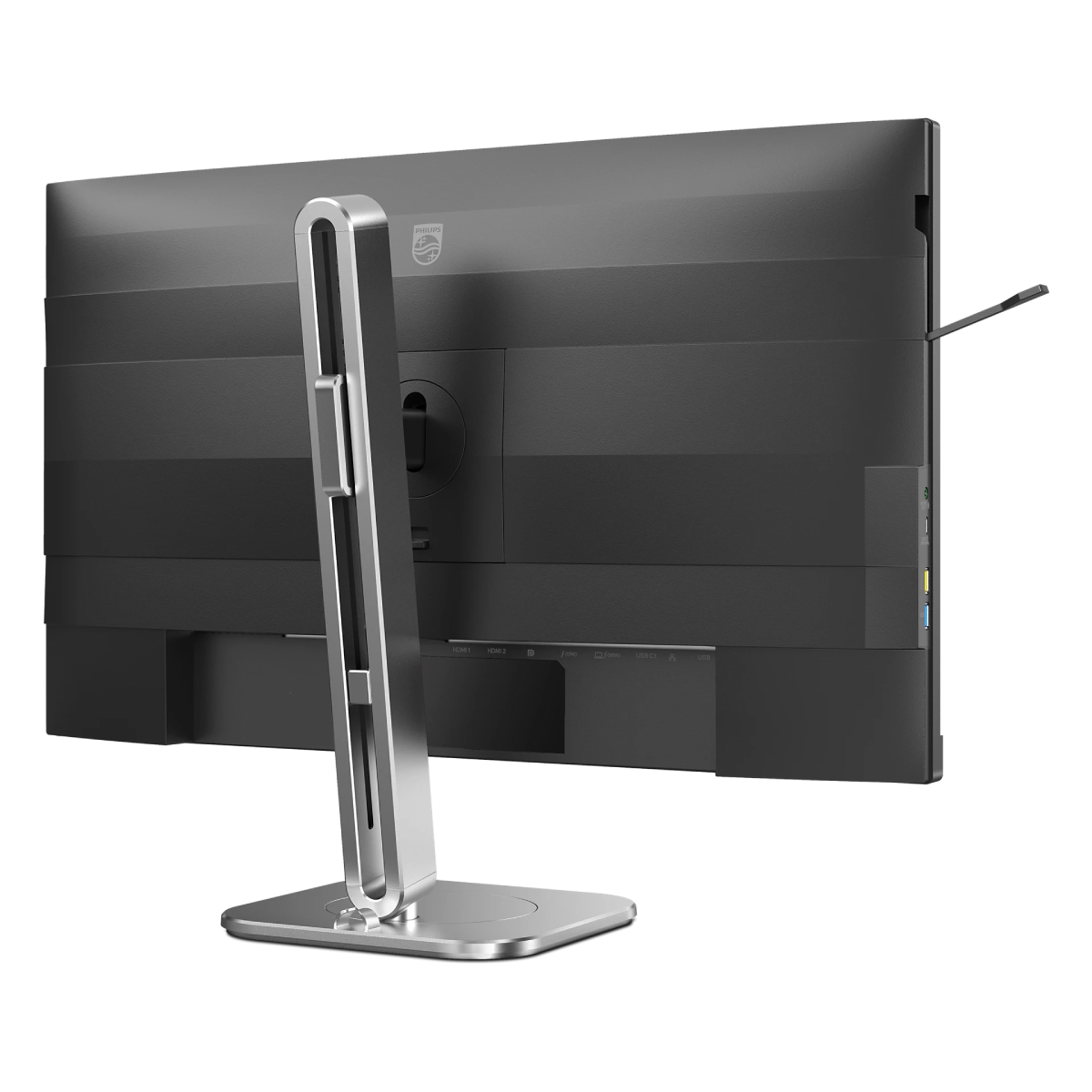 MultiView ermöglicht zwei angeschlossene Geräte und deren Anzeige gleichzeitigMit dem ultrahochauflösenden Philips MultiView Monitor erleben Sie nun eine umfassende Konnektivität. MultiView ermöglicht zwei aktive angeschlossene Geräte und deren Anzeige, damit Sie mit mehreren Geräten, wie z. B. mit einem PC und Notebook, für komplexes Multitasking gleichzeitig arbeiten können. | Neigungs-, Dreh-, und Höhenverstellung für eine optimale SichtDer Compact Ergo Standfuß ist ein benutzerfreundlicher Philips Monitorstandfuß, der durch seine vielfältigen Einstellungsmöglichkeiten (schwenkbar, neigbar und höhenverstellbar) ein effizientes angenehmes Arbeiten ermöglicht. | Haken für Kopfhörer: Für individuelle AufbewahrungDie Kopfhöreraufbewahrung gab es mit dieser Funktion zuvor noch nicht. Ziehen Sie den Haken an der Seite des Monitors vorsichtig nach unten: Diese Funktion sorgt für einen aufgeräumten Schreibtisch und bietet eine praktische Lösung für das Kabelmanagement am Arbeitsplatz. |