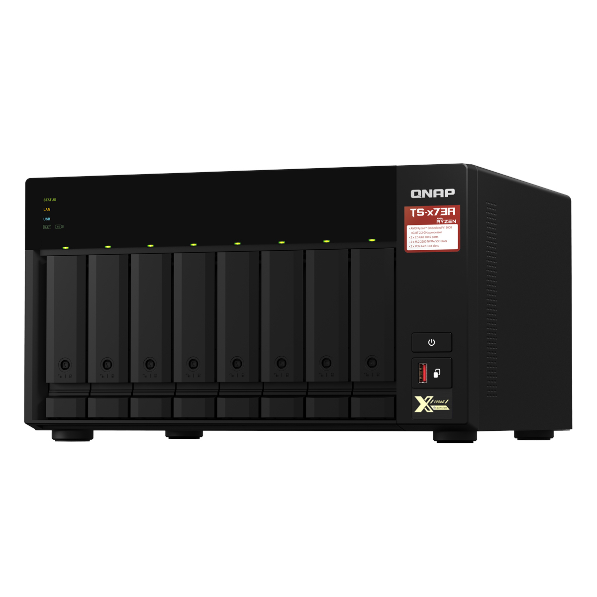 Ausgestattet mit einem AMD Ryzen™ V1000 Serie V1500B Quad-Core Prozessor, der mit bis zu Quad-Core / 8 Threads und Turbo Core bis zu 2,2 GHz eine großartige Systemleistung liefert. Das TS-873A verfügt über zwei 2,5GbE RJ45 Ports und zwei PCIe Gen 3 Steckplätze, damit du flexibel 5GbE/10GbE Netzwerke einsetzen kannst. Zwei M.2 NVMe SSD Steckplätze für Qtier Technologie und SSD-Caching ermöglichen eine ständige Speicheroptimierung. Das TS-873A unterstützt QTS und QuTS hero, so dass der Anwender je nach Bedarf flexibel das Betriebssystem wechseln kann.
