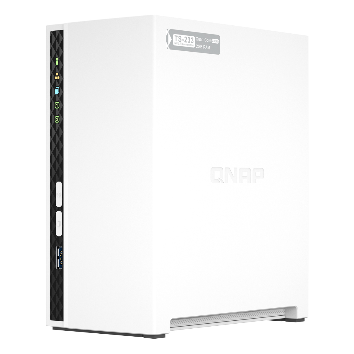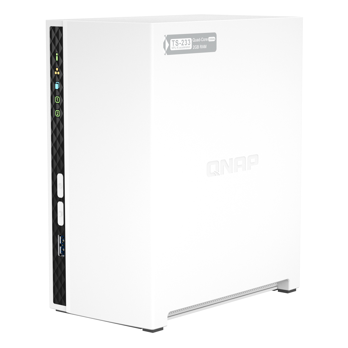 Ausgestattet mit einem ARM® Cortex-A55 Quad-Core 2 GHz Prozessor, integriertem 2 GB RAM, einem Gigabit-LAN-Anschluss und Unterstützung für zwei SATA 6Gb/s Festplatten bietet das TS-233 eine zuverlässige Lese-/Schreibleistung für die Ausführung verschiedener privater und geschäftlicher NAS-Anwendungen. Das TS-233 verfügt über eine hardwarebeschleunigte AES-NI-256-Verschlüsselung sowohl für vollständige NAS-Volumes als auch für Freigabeordner, die die Systemleistung steigert und gleichzeitig sensible Daten schützt.
