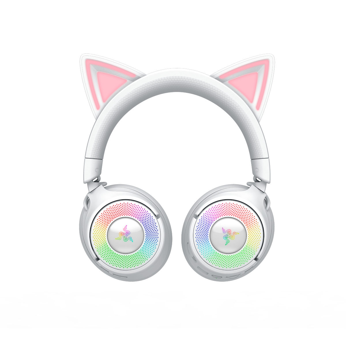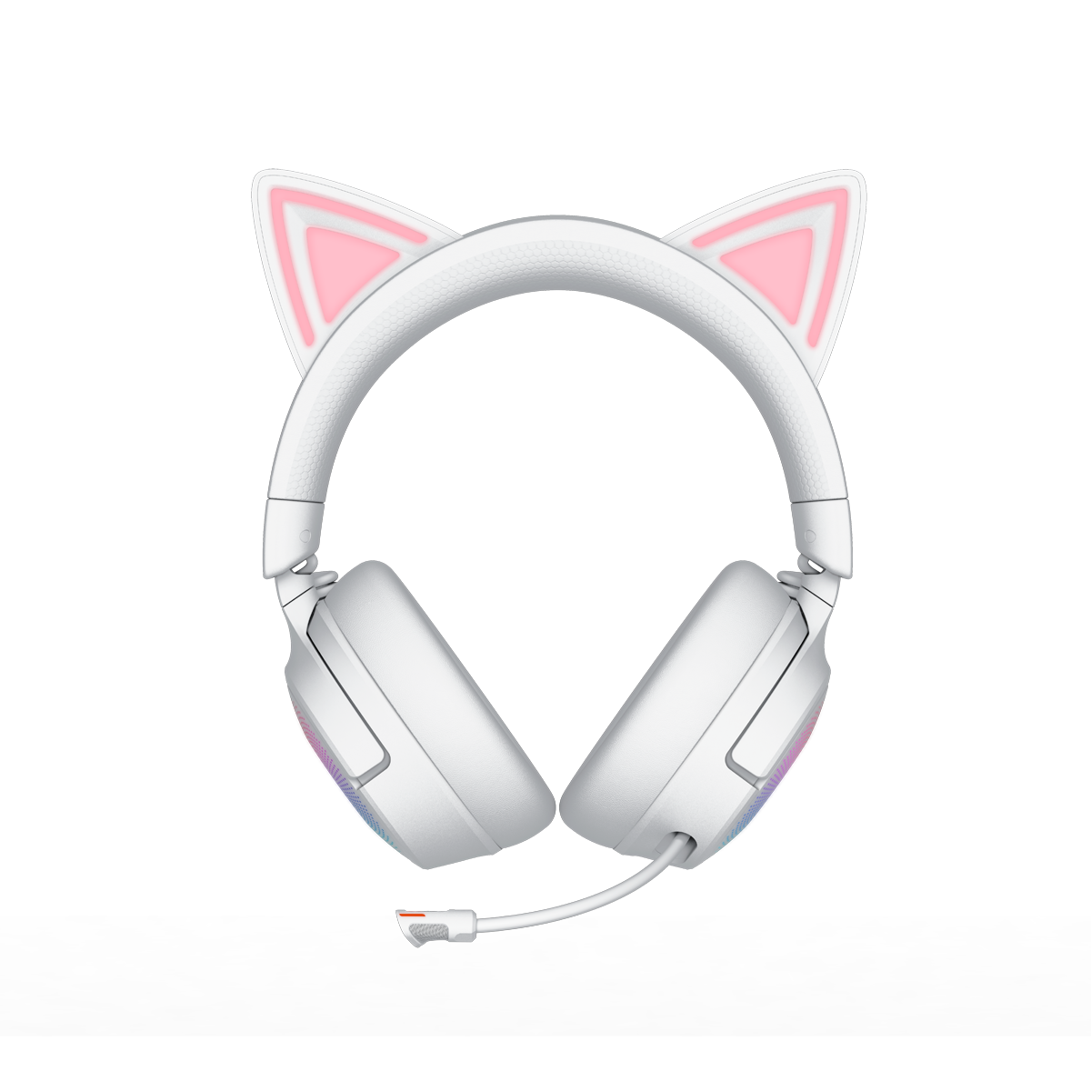 Setze ein Statement mit dem Razer Kraken Kitty V3 Pro – einem kabellosen Gaming-Headset mit dem legendären Katzenohren-Design, beleuchtet durch Razer Chroma™ RGB. Mit drei vielseitigen Verbindungsmöglichkeiten, einem Super-Breitband-Mikrofon und reaktiver Beleuchtung – niedlich, bequem und kompetitiv, aber mit Style.