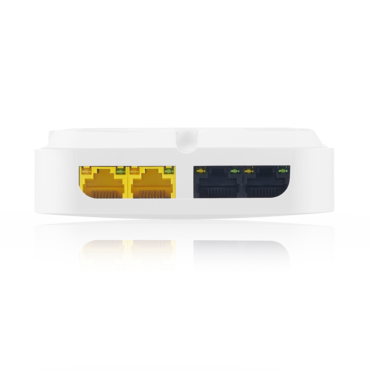 Zyxel WAX 300H ist nicht nur ein drahtloser AP, sondern auch ein Switch, der eine breite Palette von In-Room-Diensten unterstützen kann, von kabelgebundenen bis hin zu drahtlosen, ohne dass zusätzliche Stromanschlüsse erforderlich sind.