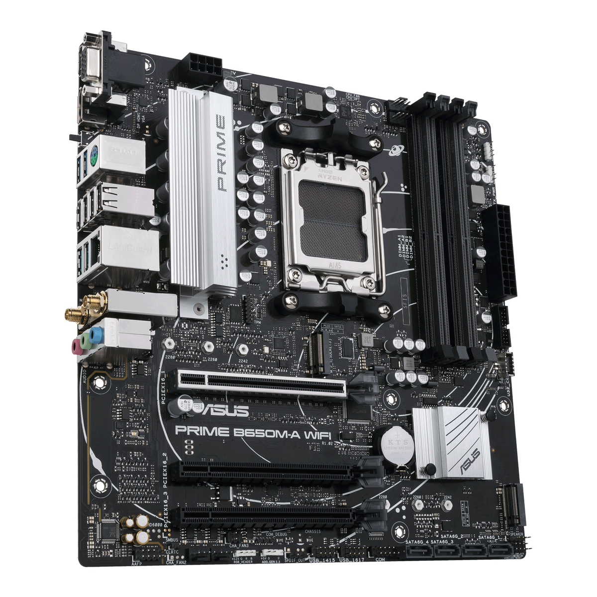 AMD B650 Micro-ATX Mainboard, DDR5, PCIe 5.0 M.2 Unterstützung, Realtek 2.5Gb Ethernet, Wi-Fi 6, DisplayPort, VGA, HDMI®, SATA 6 Gbps, USB 3.2 Gen 2 Anschlüsse, Front USB 3.2 Gen 1 Type-C®, BIOS FlashBack™, Aura Sync |  |
