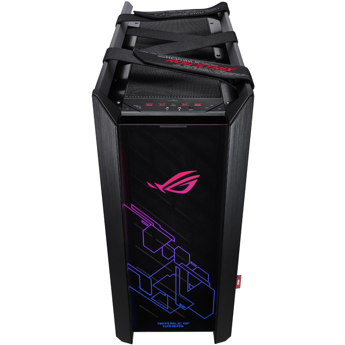 ROG STRIX HELIOSENTWICKELT FÜR SHOWCASE-SYSTEMEDas ROG Strix Helios ist ein hochwertiges Gaming-Gehäuse mit drei Fenstern aus gehärtetem Glas, einem veredelten Aluminiumrahmen und integrierter RGB-Beleuchtung auf der Vorderseite. Das integrierte Kabelmanagement, einschließlich einer Multifunktionsabdeckung mit GPU-Halterungen, sorgt für einen aufgeräumten und übersichtlichen Innenraum. Da das Gehäuse für Erweiterbarkeit und Performance ausgelegt ist, bietet es Platz für ein Mainboard mit bis zu EATX-Formfaktor und eine leistungsstarke Wasserkühlung – das macht es zur perfekten Wahl für ein klassisches ROG-Showcase-System. |