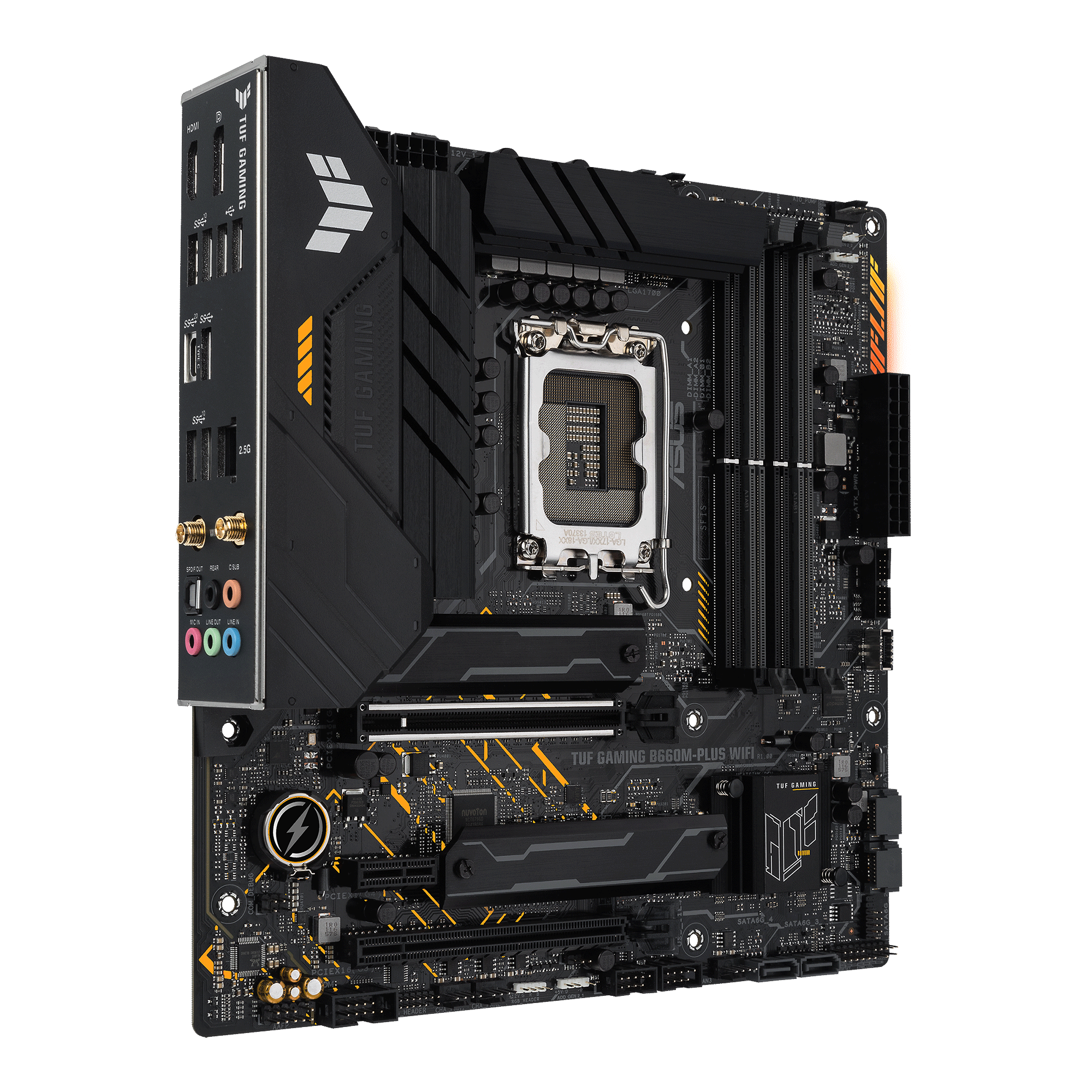 - Das ASUS TUF GAMING B660M-PLUS WIFI vereint alle wesentlichen Elemente der neuesten Intel® Prozessoren mit spieletauglichen Funktionen und bewährter Haltbarkeit. Mit Komponenten in Militärqualität, einer verbesserten Stromversorgungslösung und einem umfassenden Kühlsystem bietet dieses Mainboard eine grundsolide und stabile Leistung für Marathon-Gaming. Ästhetisch trägt das TUF GAMING B660M-PLUS WIFI das neue TUF Gaming-Logo und enthält einfache geometrische Designelemente, die die Zuverlässigkeit und Stabilität der TUF Gaming-Serie widerspiegeln
