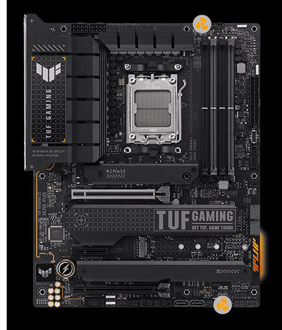 Ein gut abgestimmtes System verdient eine passende Ästhetik. Die TUF GAMING X670E-Serie verfügt über eine Kantenbeleuchtung, um den robusten Look zu verbessern, und ASUS Aura bietet eine vollständige RGB-Steuerung mit Voreinstellungen für integrierte LEDs und Streifen von Drittanbietern. Das alles lässt sich mit einem ständig wachsenden Portfolio an Aura-kompatibler Hardware synchronisieren.