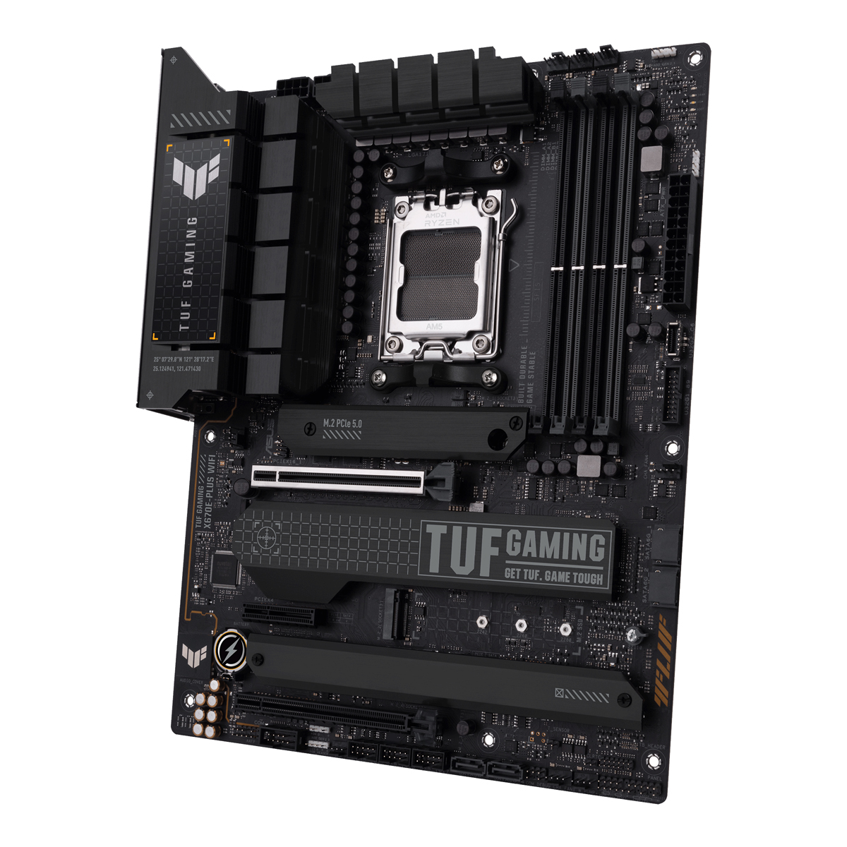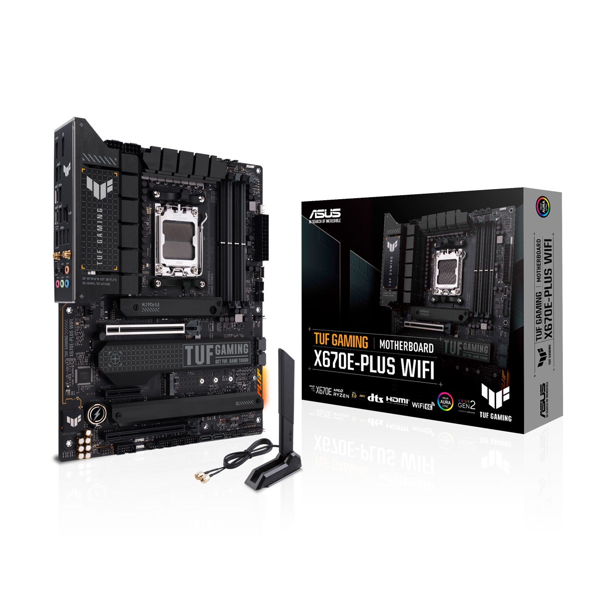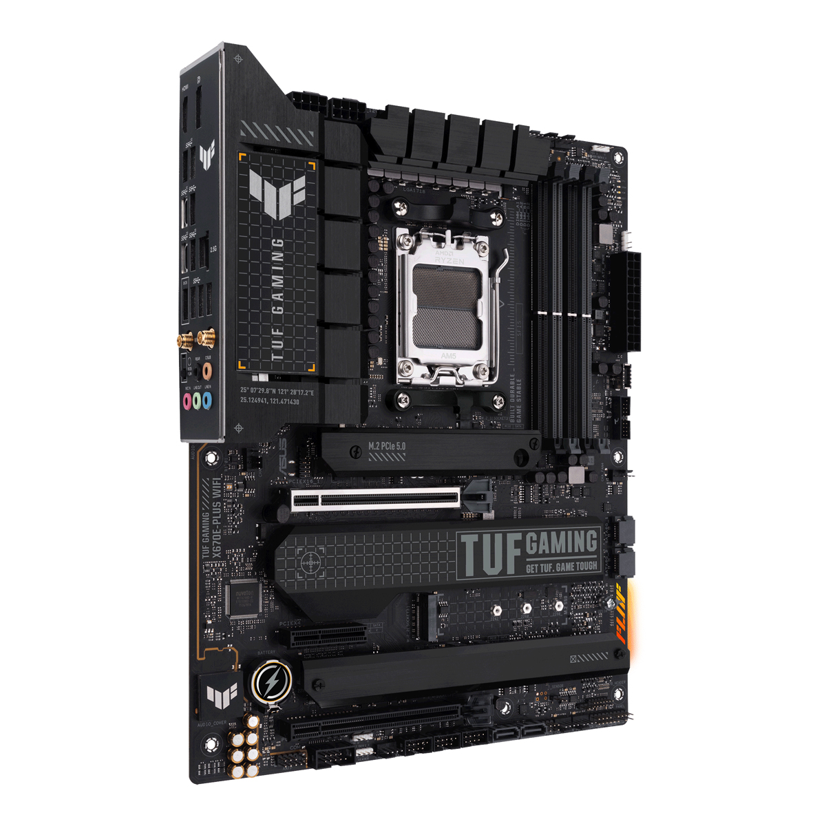 Das ASUS TUF GAMING X670E-PLUS WIFI nimmt alle wesentlichen Elemente der neuesten AMD-Prozessoren auf und kombiniert sie mit spieletauglichen Funktionen und bewährter Haltbarkeit. Mit Komponenten in Militärqualität, einer verbesserten Stromversorgungslösung und einem umfassenden Kühlsystem übertrifft dieses Mainboard alle Erwartungen und bietet eine felsenfeste und stabile Leistung für Gaming-Marathons. TUF GAMING-Mainboards werden außerdem strengen Härtetests unterzogen, um sicherzustellen, dass sie Bedingungen standhalten, bei denen andere versagen könnten. Ästhetisch ist dieses Modell mit robusten, schwarzen und geometrischen Designelementen ausgestattet, die die Zuverlässigkeit und Stabilität der TUF GAMING-Serie widerspiegeln.