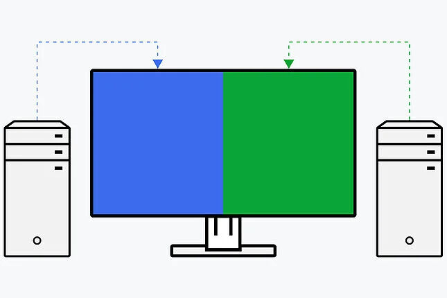 | Picture-by-Picture: alles auf einen BlickDer Picture-by-Picture-Modus erlaubt Ihnen die Darstellung verschiedener Signalquellen auf einem Bildschirm. Dabei können Sie wählen, welches Signal auf der rechten oder linken Bildhälfte angezeigt werden soll. Nutzen Sie den Picture-by-Picture-Modus beispielsweise, wenn Sie zwei Rechner an einen Monitor anschließen möchten, oder wenn an einem Computer zwei einzelne Bildschirme ersetzt werden sollen. |