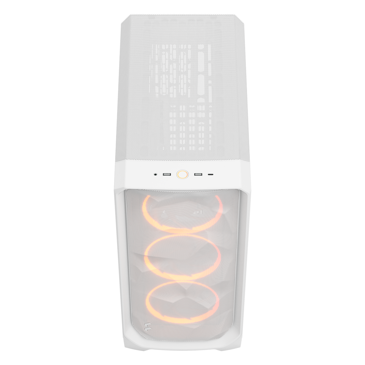 Genieße ein einfaches Bauerlebnis mit leicht abnehmbaren Panels, einschließlich eines Toppanels mit Stofflasche. Kreiere einen cleanen, eleganten Look dank der Kabelabdeckungen und Kabelführungen im Innenraum. Schließe deine USB- und Audiogeräte an das I/O Panel an der Oberseite des Meshify 3 an, welches dir einen USB Typ-C-Anschluss mit 20 Gbps, zwei USB-A-Anschlüsse und eine kombinierte Audio-Buchse bietet.