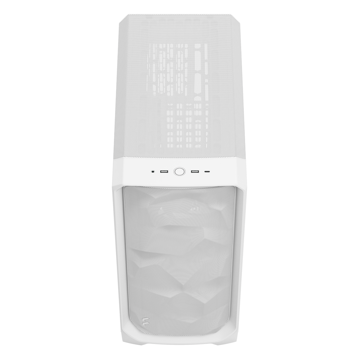 Die elegante Mesh-Front mit Facetten-Struktur ist nicht nur ein optisches Highlight und Erkennungsmerkmal der Meshify-Serie, sondern sorgt auch durch ihre hohe Luftdurchlässigkeit für einen optimalen Luftstrom und eine bessere Kühlung der Komponenten im Innenraum.