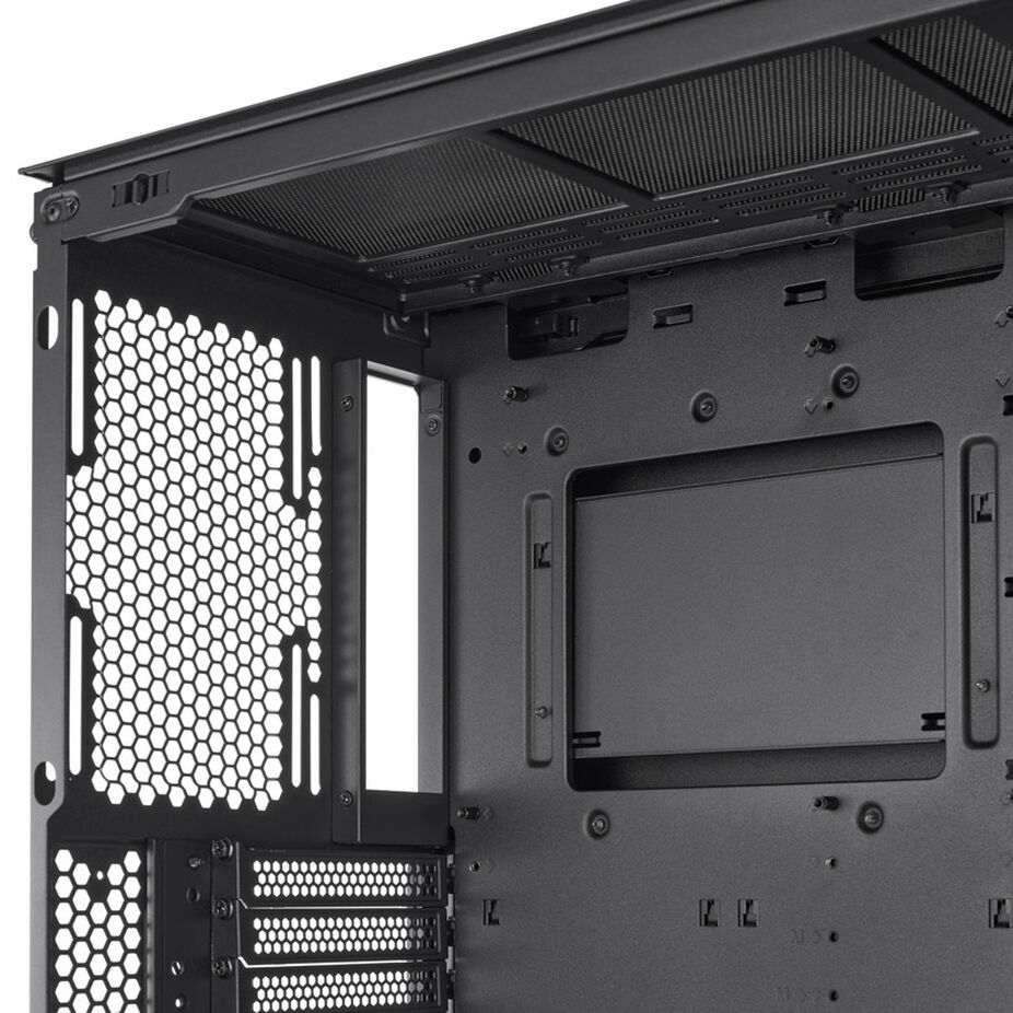 Der LANCOOL 216 wurde gezielt im Hinblick auf die Kühlung leistungsstarker Hardware konzipiert und bietet zahlreiche Lufteinlässe: Die Frontabdeckung besteht hauptsächlich aus luftdurchlässigem Mesh. Auch die Rückseite, der Deckel und der Gehäuseboden sind mit großzügigen Lüftungsöffnungen versehen. Der Deckel ist mit einem magnetischen Staubfilter ausgestattet, der Staubfilter unter dem Netzteil befindet sich in einem Einschub. Somit sind alle Filter herausnehmbar und können einfach gereinigt werden. Die Seitenteile werden mit Rändelschrauben befestigt, was ein werkzeugloses Öffnen des Gehäuses ermöglicht.