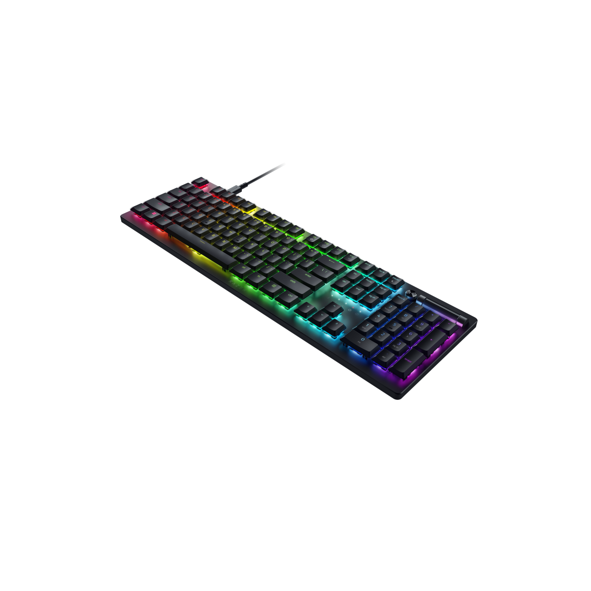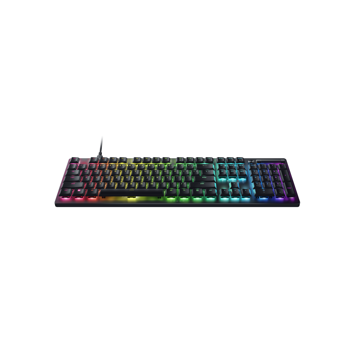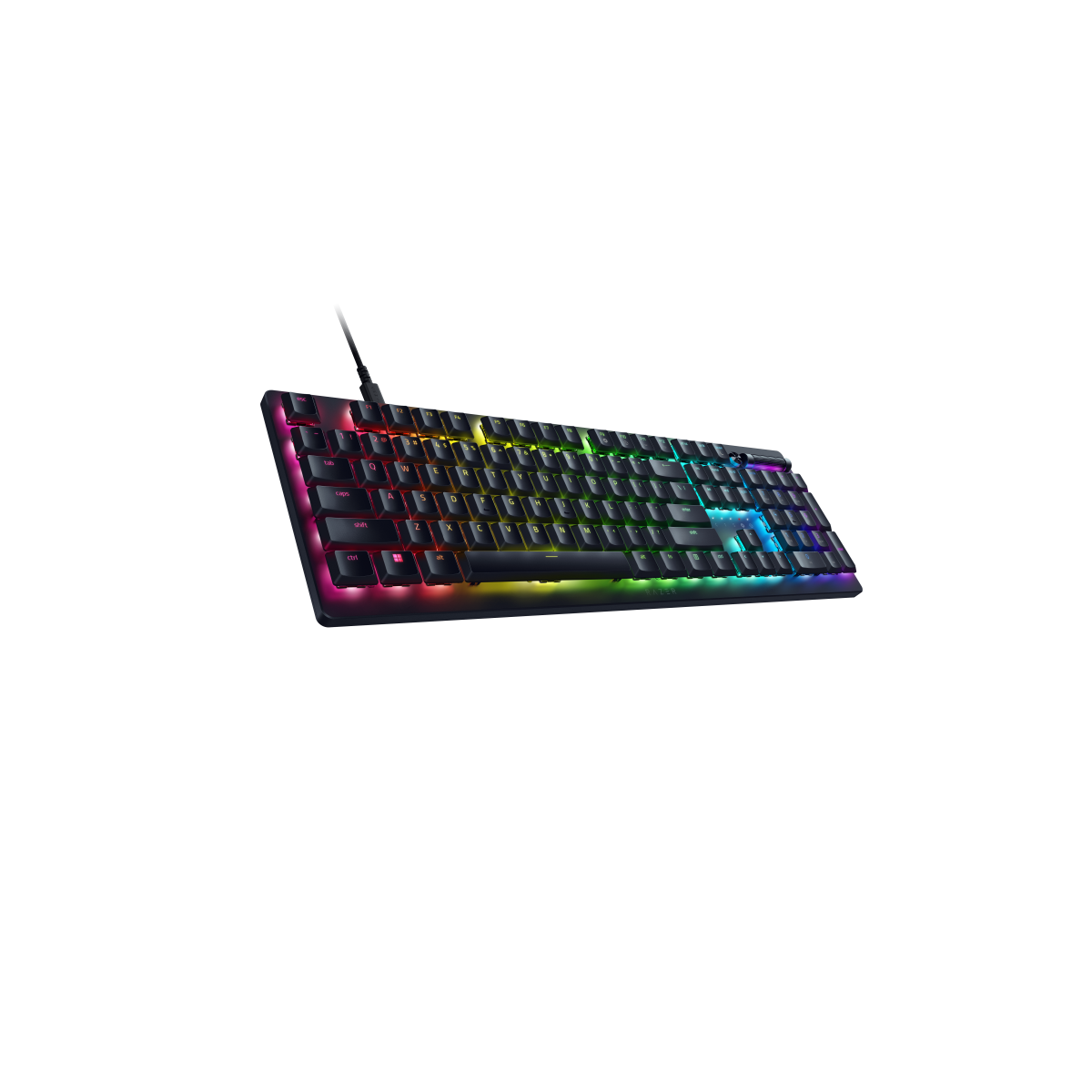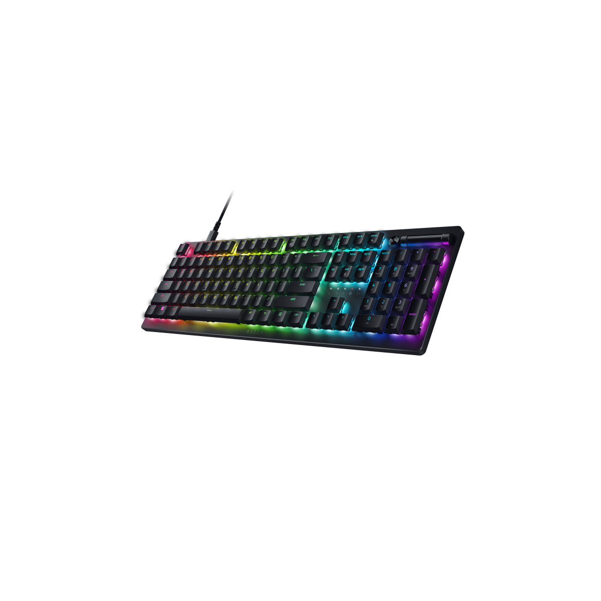 Noch robuster als Doubleshot-ABS-Tastenkappen, mit gestochen scharfen Beschriftungen. Hintergrundbeleuchtete Beschriftungen* für Sekundärfunktionen erleichtern das Tippen, und die Einzeltasten-RGB-Beleuchtung leuchtet hell und gleichmäßig – eben 100 % RGB.