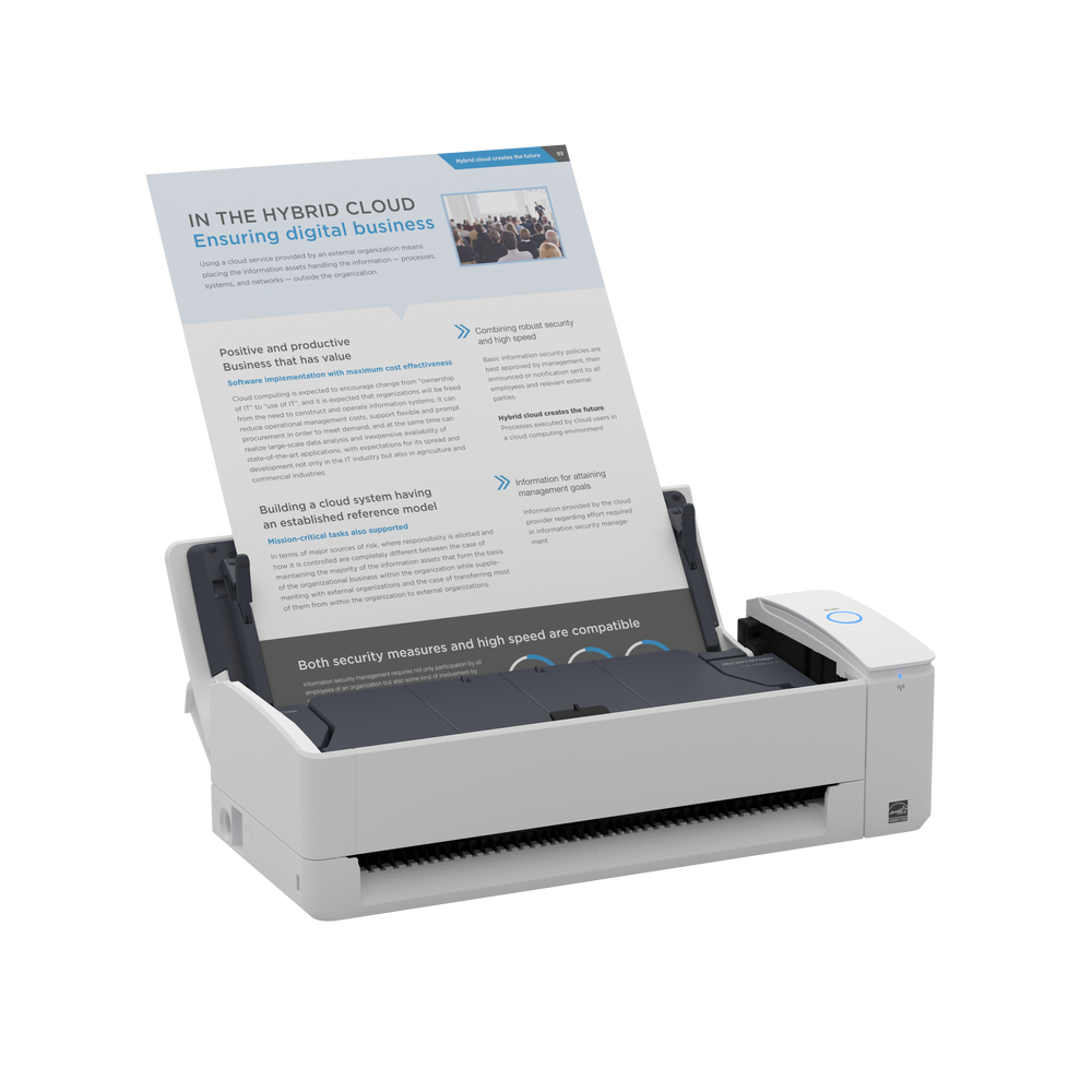 Der innovative Dokumenteneinzug des iX1300 minimiert die Stellfläche und macht ihn zu unserem bislang kompaktesten Desktop-Scanner. WLAN-Konnektivität und PC-freies Scannen in Cloud-Dienste über die ScanSnap-Cloud ermöglichen eine effizientere Art der Arbeit.