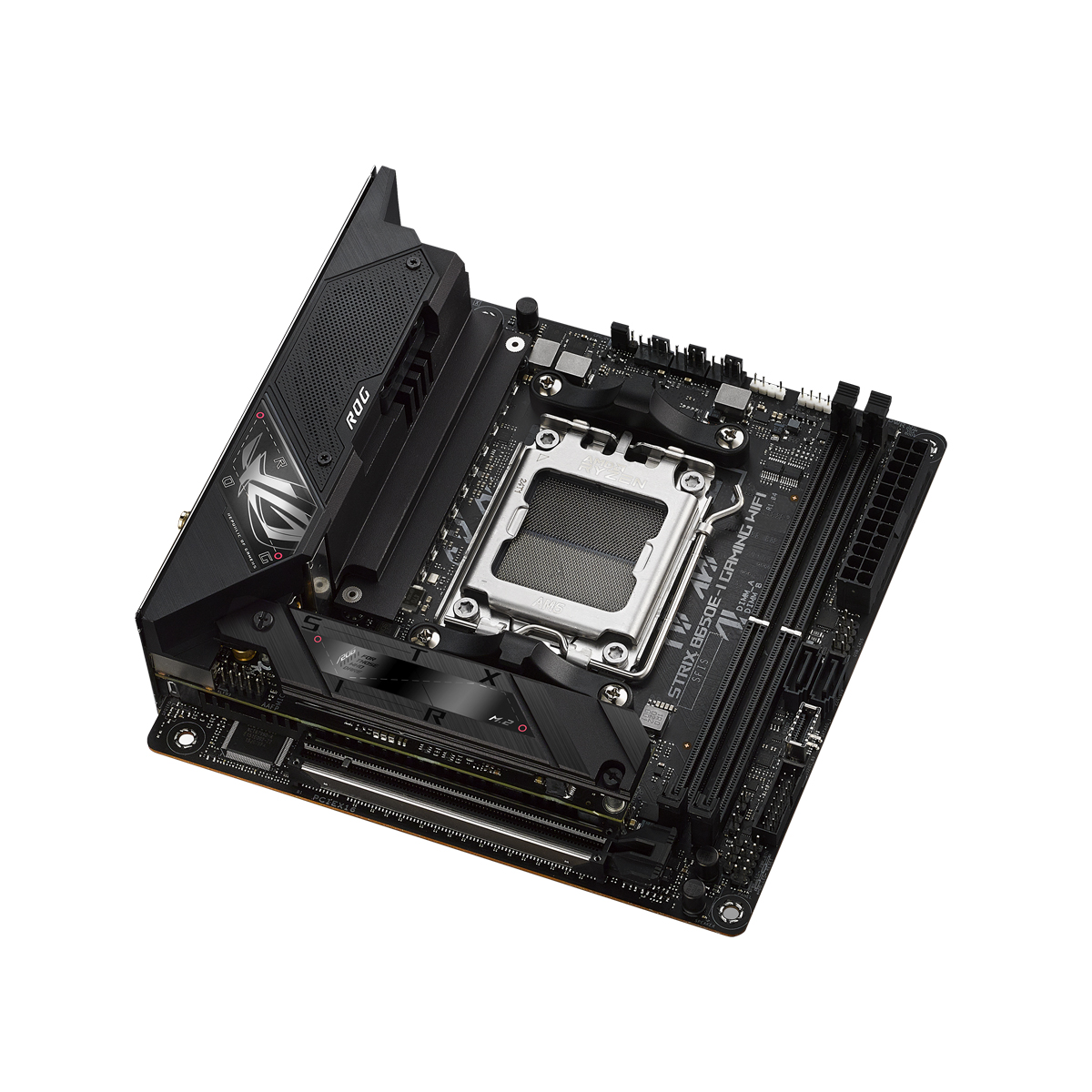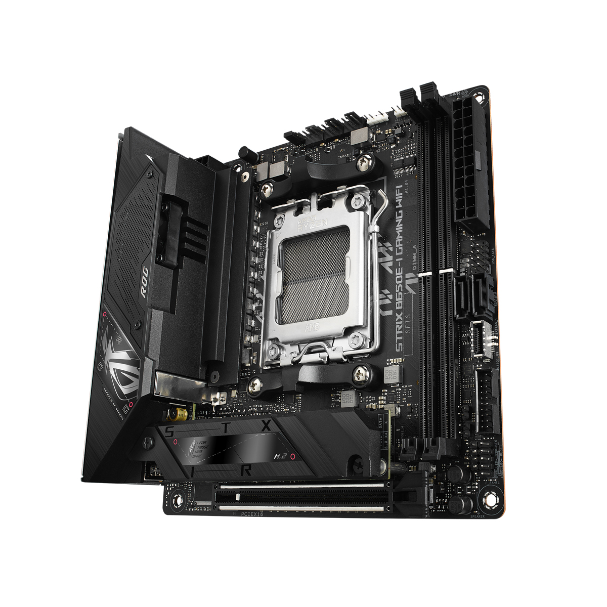 Das Strix B650E-I unterstützt den neuen Standard PCIe 5.0 durchgängig und bietet so eine uneingeschränkte Bandbreite für die schnellsten SSDs und Grafikkarten auf dem Markt. Der x16-Erweiterungssteckplatz ist Gen 5-fähig und wird durch eine SafeSlot-Halterung geschützt. Der integrierte M.2-Steckplatz ist auch für PCIe 5.0 ausgelegt und ermöglicht blitzschnelle Lese- und Schreibgeschwindigkeiten von 16 GB/s, während der andere Steckplatz über seine PCIe 4.0-Schnittstelle immer noch beeindruckende 8 GB/s überträgt.