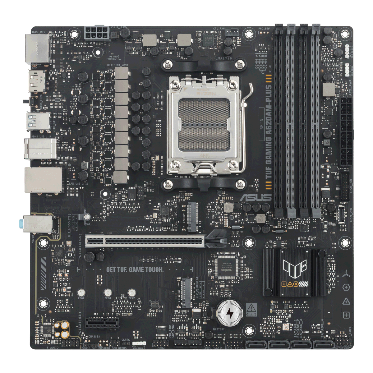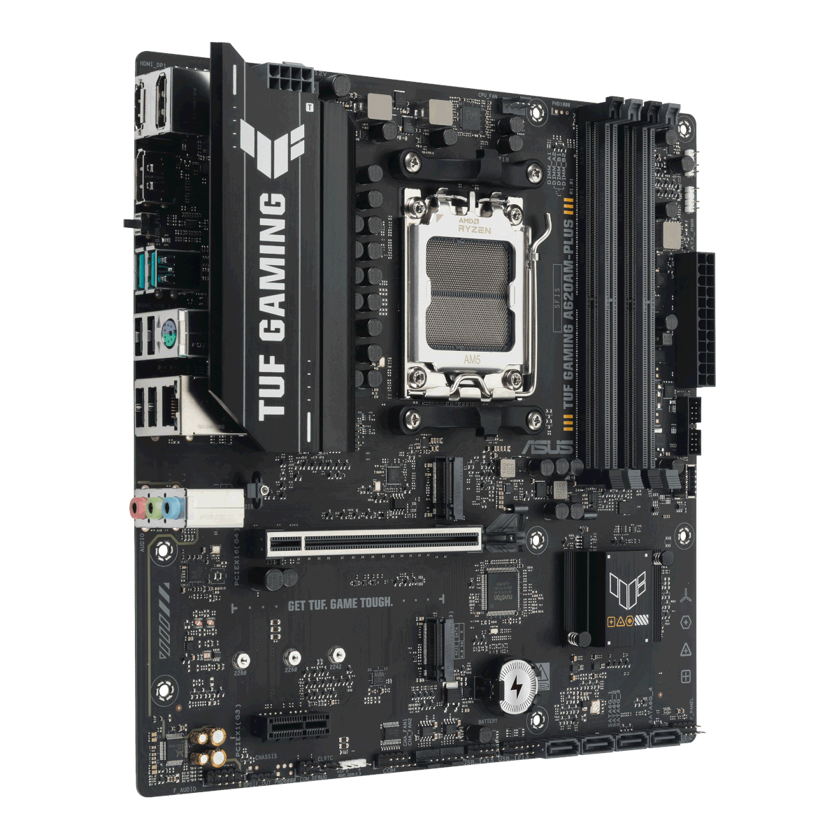 Das ASUS TUF GAMING A620AM-PLUS nimmt alle wesentlichen Elemente der neuesten AMD Ryzen™ Prozessoren auf und kombiniert sie mit spieletauglichen Funktionen und bewährter Haltbarkeit. Mit Komponenten in Militärqualität, einer verbesserten Stromversorgungslösung und einem umfassenden Kühlsystem übertrifft dieses Mainboard alle Erwartungen und bietet eine felsenfeste und stabile Leistung für Gaming-Marathons. TUF GAMING-Mainboards werden außerdem strengen Härtetests unterzogen, um sicherzustellen, dass sie Bedingungen standhalten, bei denen andere versagen könnten. Diese Plattform bietet die Leistung und Konnektivität, die fortschrittliche KI-PC-Anwendungen erfordern.