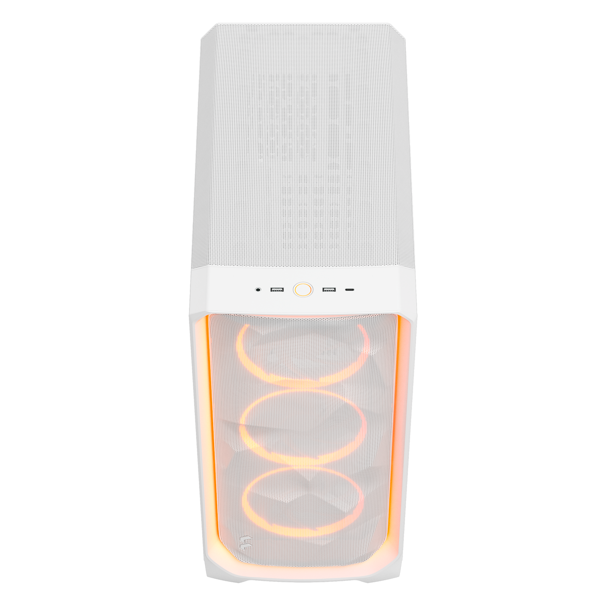 Genieße ein einfaches Bauerlebnis mit leicht abnehmbaren Panels, einschließlich eines Toppanels mit Stofflasche. Kreiere einen cleanen, eleganten Look dank der Kabelabdeckungen und Kabelführungen im Innenraum. Schließe deine USB- und Audiogeräte an das I/O Panel an der Oberseite des Meshify 3 an, welches dir einen USB Typ-C-Anschluss mit 20 Gbps, zwei USB-A-Anschlüsse und eine kombinierte Audio-Buchse bietet.