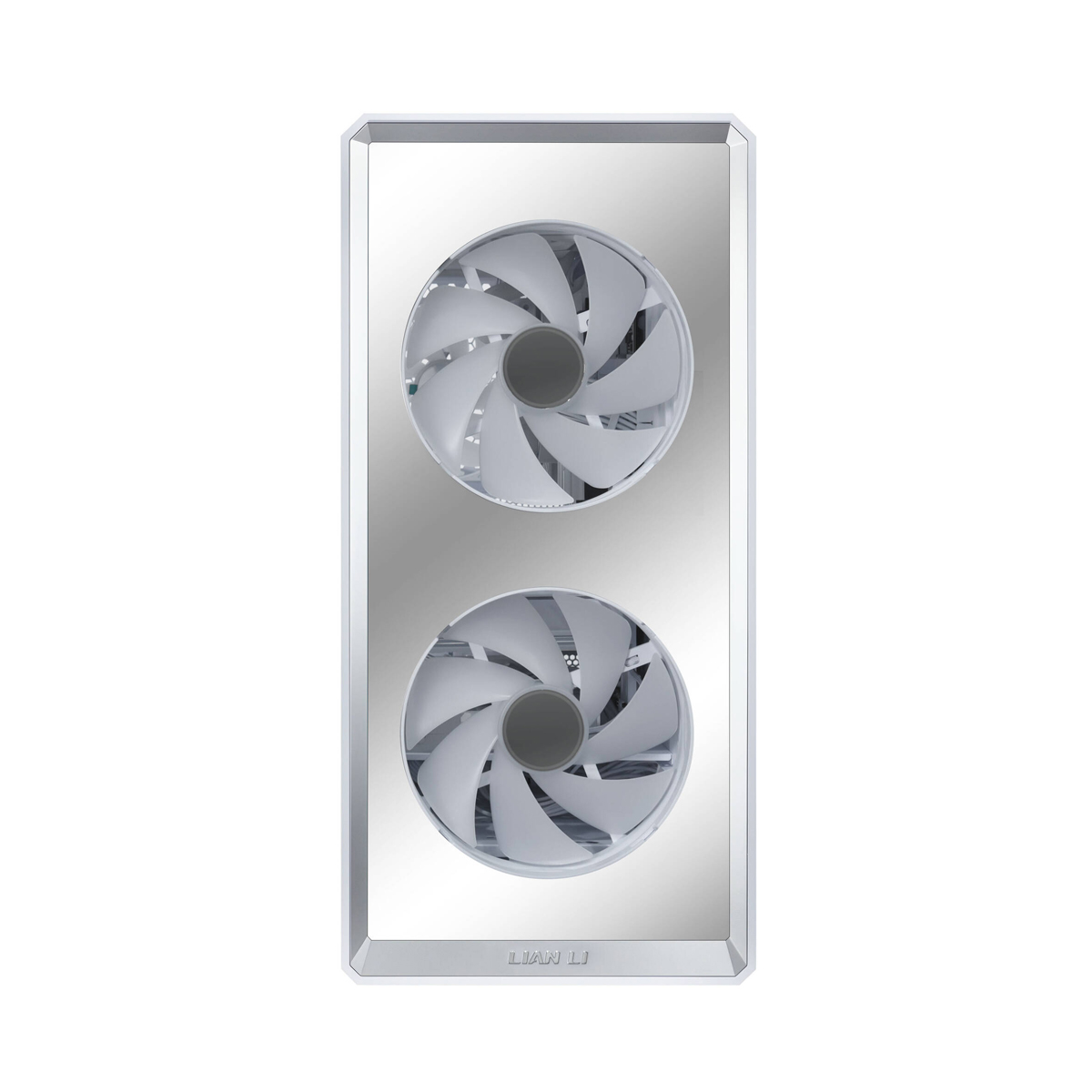 Die PCIe-Steckplatzhalterung lässt sich um 90 Grad drehen, um die vertikale GPU-Montage zu ermöglichen. In diesem Setup kann der untere Lüfter unter die Netzteilabdeckung geschoben werden, um ihn unsichtbar zu machen und Nutzern mehr Flexibilität beim Systemaufbau zu bieten.