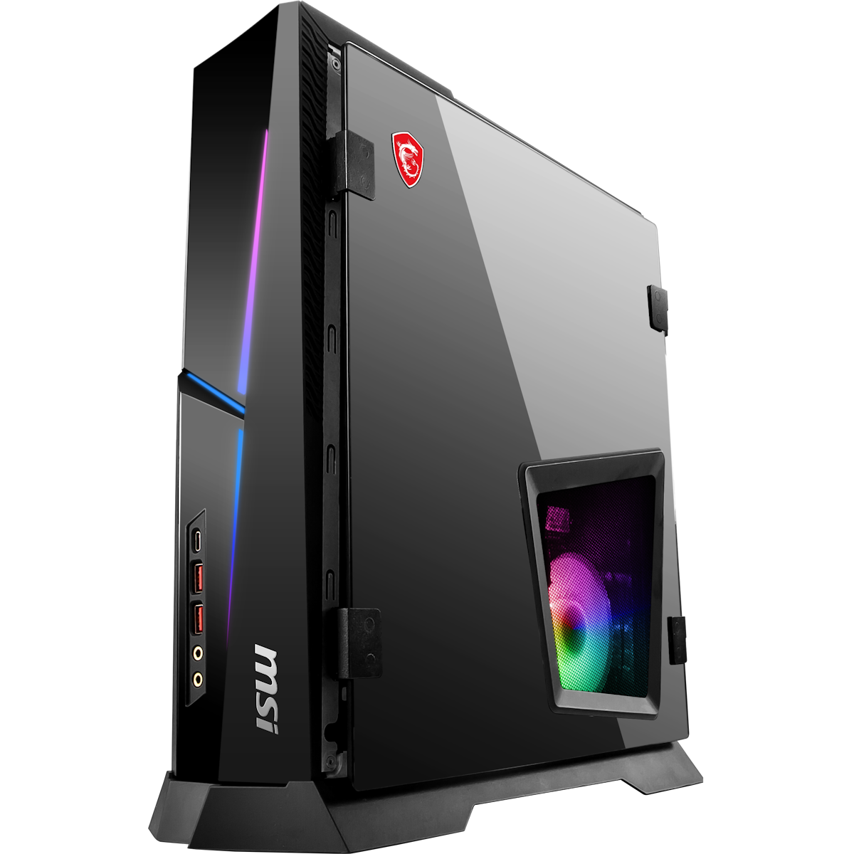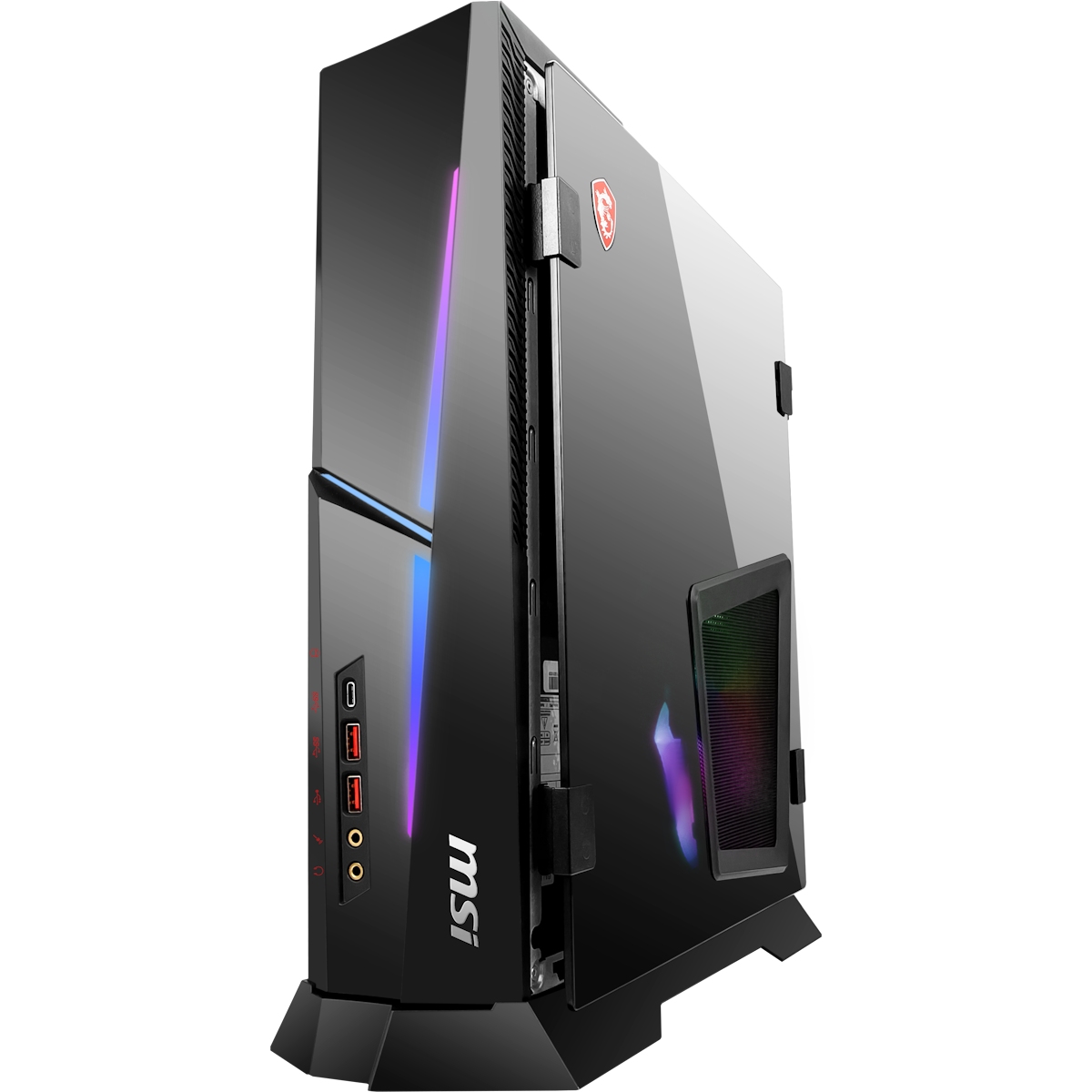 Das System hat für jede Komponente eigene Luftkammern und nutzt clevere Algorithmen, um die Lüftergeschwindigkeit optimal zu regeln. So wird die Wärme effizient aus dem Gaming-Desktop abgeleitet und du kannst dich auf kompromisslose Leistung verlassen. WENIGER IST MEHRDie Trident-Serie ist der kompakteste Gaming-Desktop auf dem Markt. Trotz seines Volumens von nur 10 Litern hat er leistungsstarke Komponenten, die man sonst nur in Full-Tower-Gehäusen findet, wie die neuesten Prozessoren und Grafikkarten. Kurz gesagt: Das Einzige, was die Trident-Serie übertreffen kann, ist ihre nächste Evolutionsstufe. Einzigartig in Aussehen und FunktionalitätMPG Trident AS ist einzigartig mit seiner türartigen Seitenwand mit gehärtetem Glas. Sobald Kunden die native Metallseitenwand gegen die gehärtete Glasscheibe ausgetauscht haben, können sie die Glasscheibe leicht wie eine Tür öffnen, wodurch sie die CPU, die Speicher oder die Festplatte problemlos aufrüsten können. BELEUCHTE DEIN SYSTEMDer MPG Trident AS AI hat eine anpassbare RGB-Beleuchtung, die echt cool ist. Von dem durch das gehärtete Glas sichtbaren pulsierenden Innenleben bis hin zu den externen Akzenten verbessert die Beleuchtung dein Gaming-Erlebnis. Mit der Ambient Link-Technik synchronisieren sich die Lichter mit dem Geschehen auf dem Bildschirm und schaffen so eine immersive Atmosphäre, die sowohl den Stil als auch das Gameplay aufwertet.