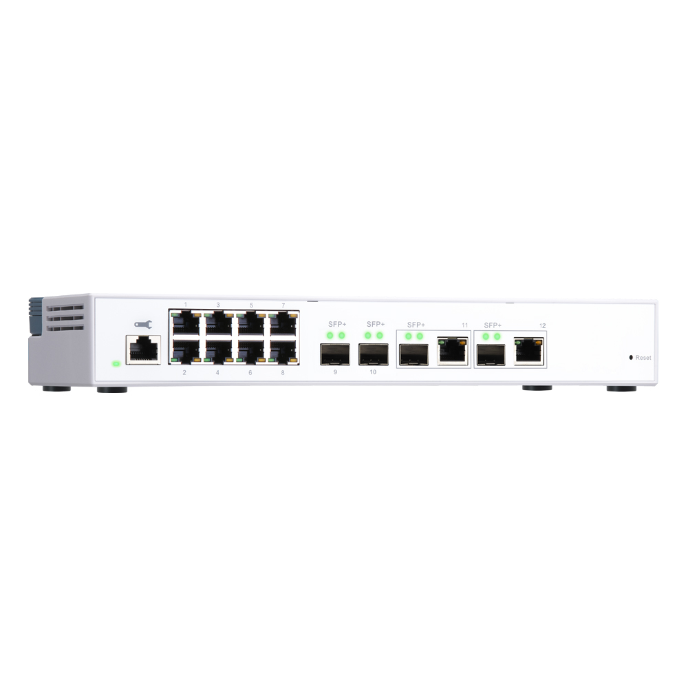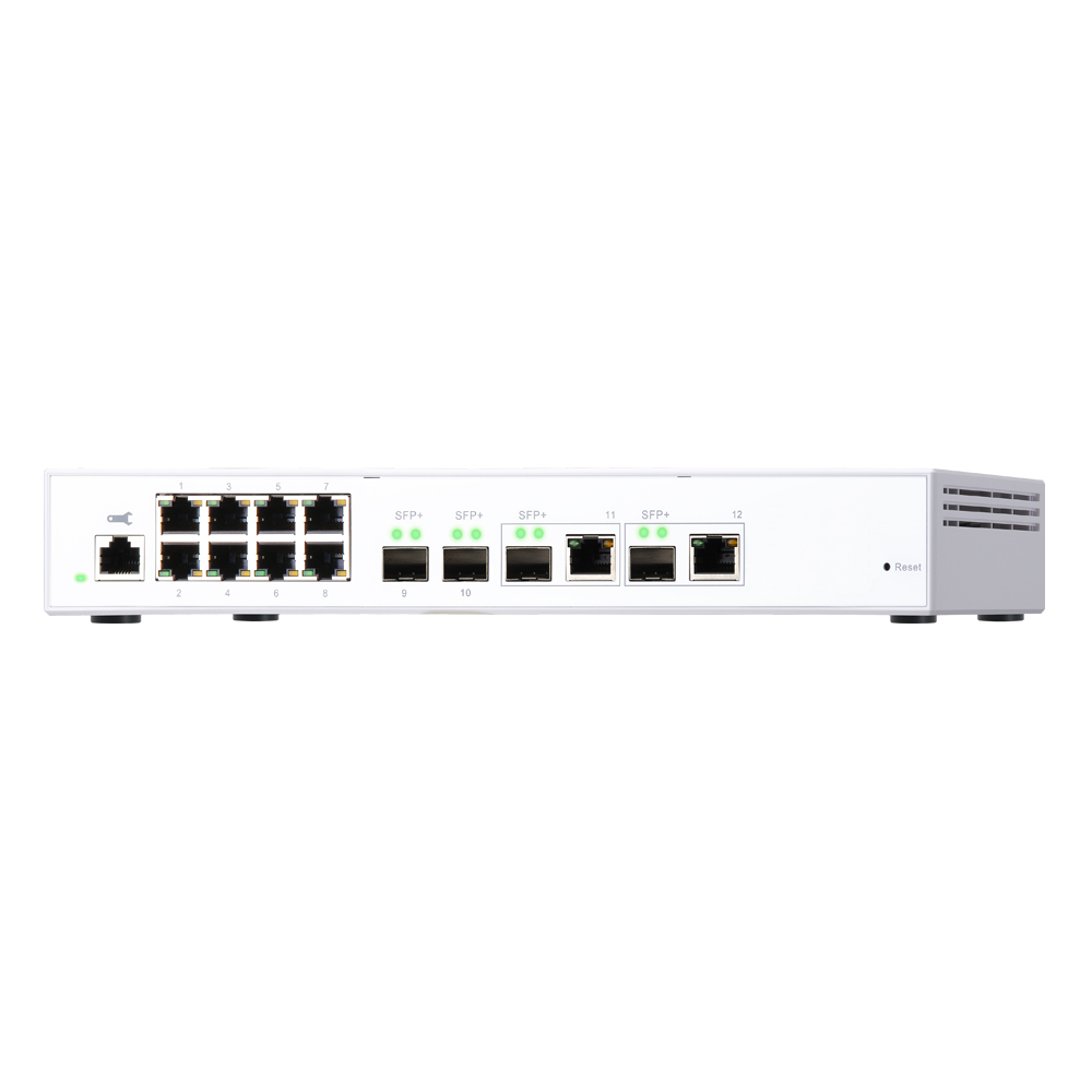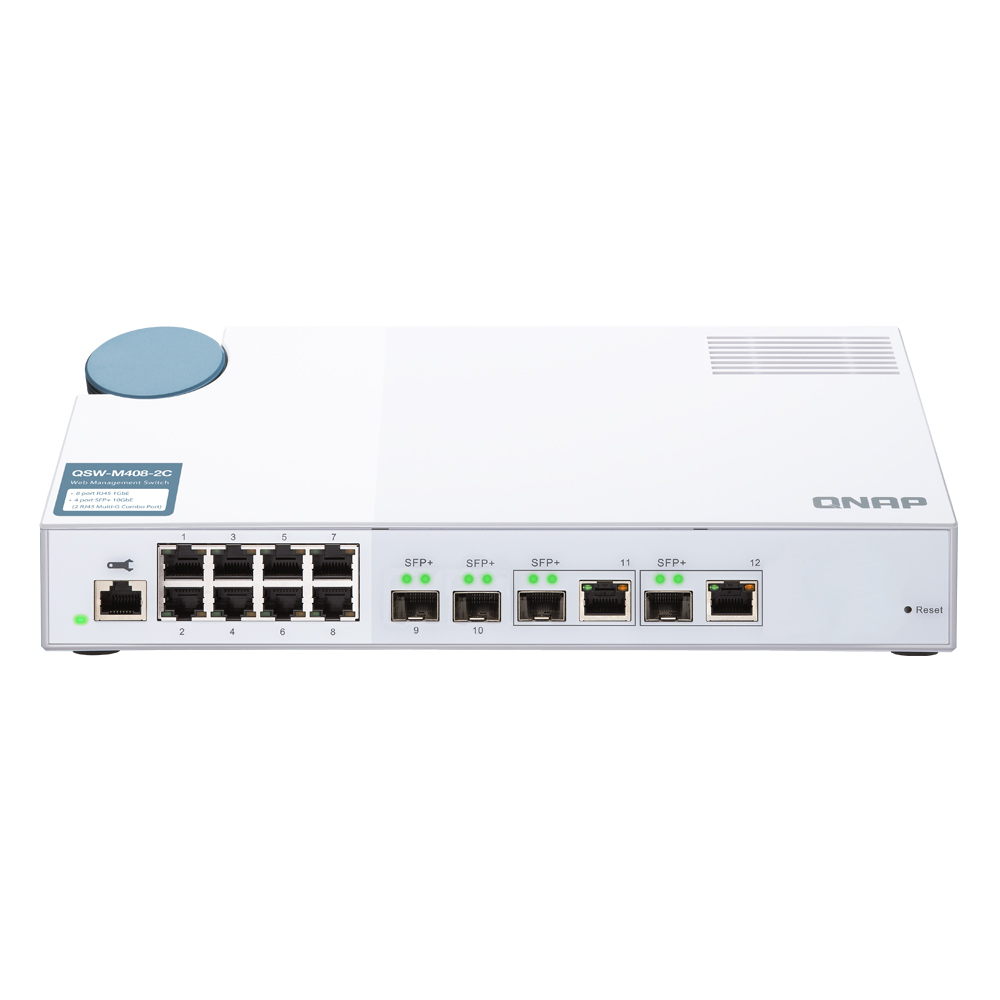 - Der QSW-M408-2C ist mit vier 10GbE SFP+ Ports (mit zwei 10GbE SFP+/RJ45 Kombi-Ports) und acht Gigabit-Ports ausgestattet. Kompatibel mit 10GbE und NBASE-T Technologien zur Unterstützung von fünf Geschwindigkeiten (10G / 5G / 2,5G / 1G / 100M) bietet der QSW-M408-2C bei Verwendung mit vorhandenen Kabeln höhere Übertragungsgeschwindigkeiten.