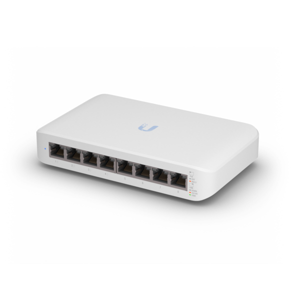 Der UniFi Switch Lite 8 PoE ist ein Full Managed Layer 2-Switch mit 8 Gigabit-Ethernet-Ports für deine RJ45-Ethernet-Geräte. Vier Ports bieten außerdem 802.3at PoE+ mit automatischer Erkennung, das für UniFi Access Points oder andere PoE-Geräte eine PoE-Leistung von bis zu 52 W liefert.