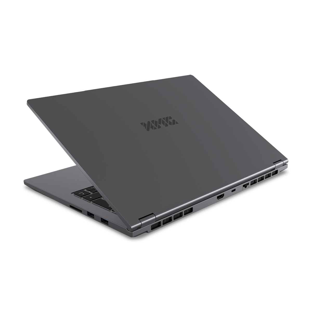 Ultrakompaktes Aluminium-Chassis Hochwertig verarbeitet und extrem stabil: Mit seinem nur 1,4 kg leichten, vollständig aus Aluminium gefertigten Gehäuse bietet das 17 mm dünne XMG EVO 14 starke Leistung im ultraportablen 14-Zoll-Format. Perfekte Passgenauigkeit bestimmt den Premium-Ansatz dieses Laptops ebenso wie ein modernes und edles Design mit zu allen vier Seiten hin schmalen Displayrändern. Gleichzeitig verbessert Aluminium die Wärmeleitfähigkeit des Chassis und fungiert ergänzend zum Dual-Lüfter-Kühlsystem als zusätzlicher, passiver Kühlkörper für die im Inneren verbaute Hardware.