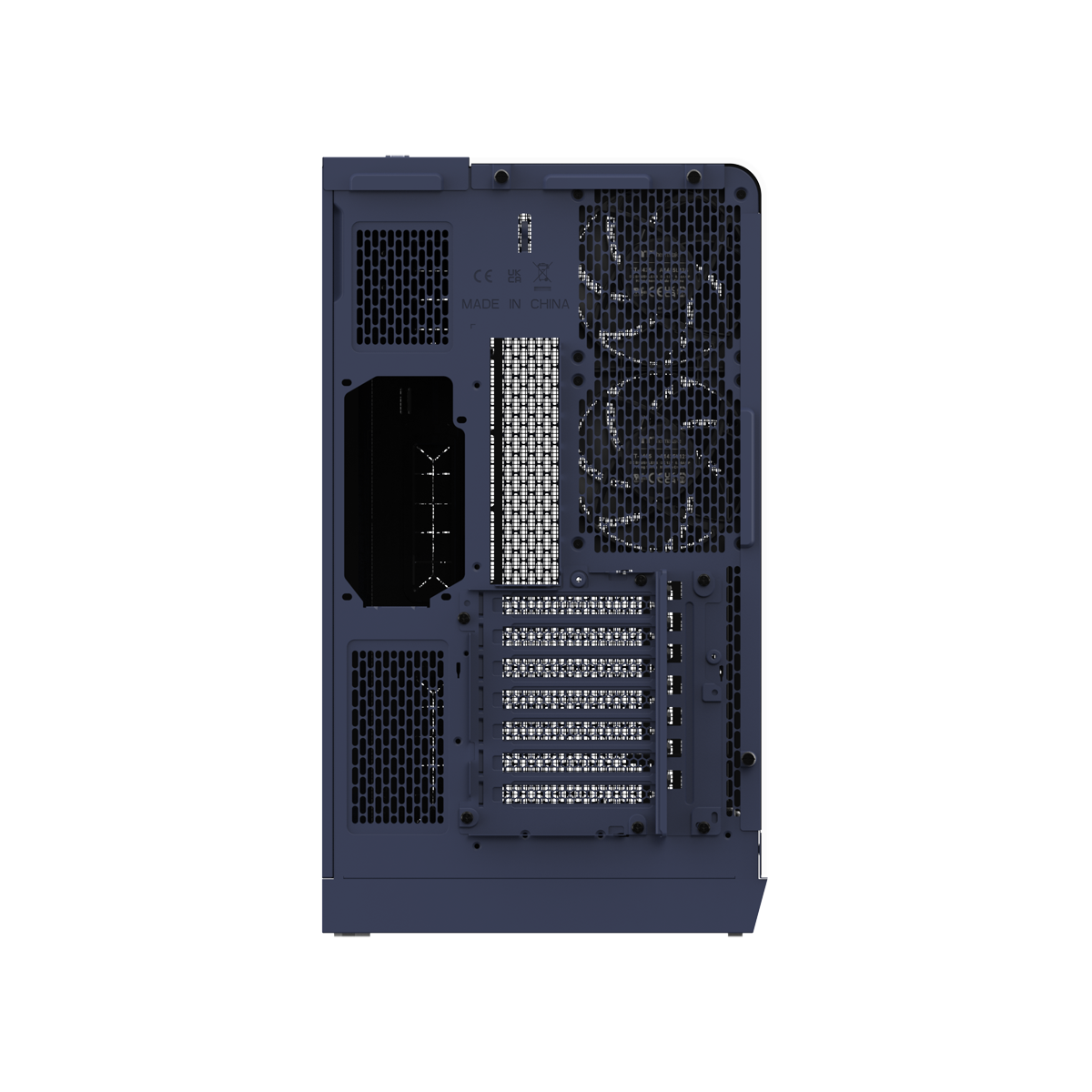 Eine integrierte GPU-Halterung verhindert das Durchbiegen schwerer Grafikkarten und sorgt für zusätzliche Stabilität. Dank rotierbarer PCIe-Slots lässt sich eine Grafikkarte auch vertikal montieren – in Kombination mit einem separat erhältlichen Riser-Kabel kann die GPU dabei mit der Kühlerseite zur Glasseite ausgerichtet werden, was die visuelle Präsentation deutlich aufwertet.